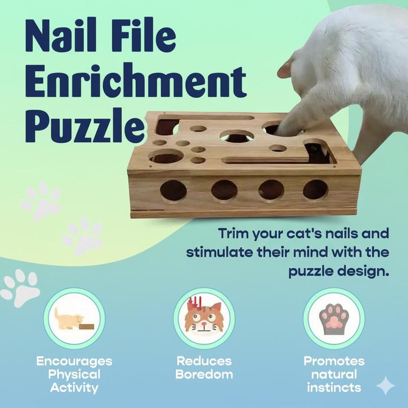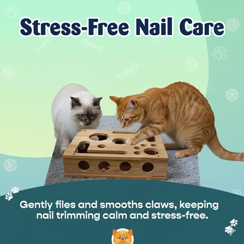 Yes. The puzzle is made from smooth, pet-safe wood with rounded edges. It gently files claws through natural scratching and movement—no sharp blades, no painful trimming, and no stress for your cat.