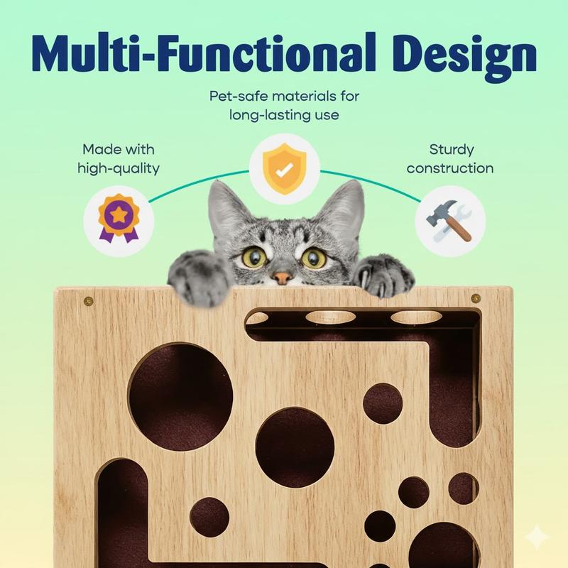 Yes! The ClawEase™ is designed for cats of all ages and sizes. The wood is treated with pet-safe materials and there are no toxic finishes. However, kittens under 12 weeks should be supervised. The various hole sizes accommodate different play styles and paw sizes, making it versatile for your entire feline family.